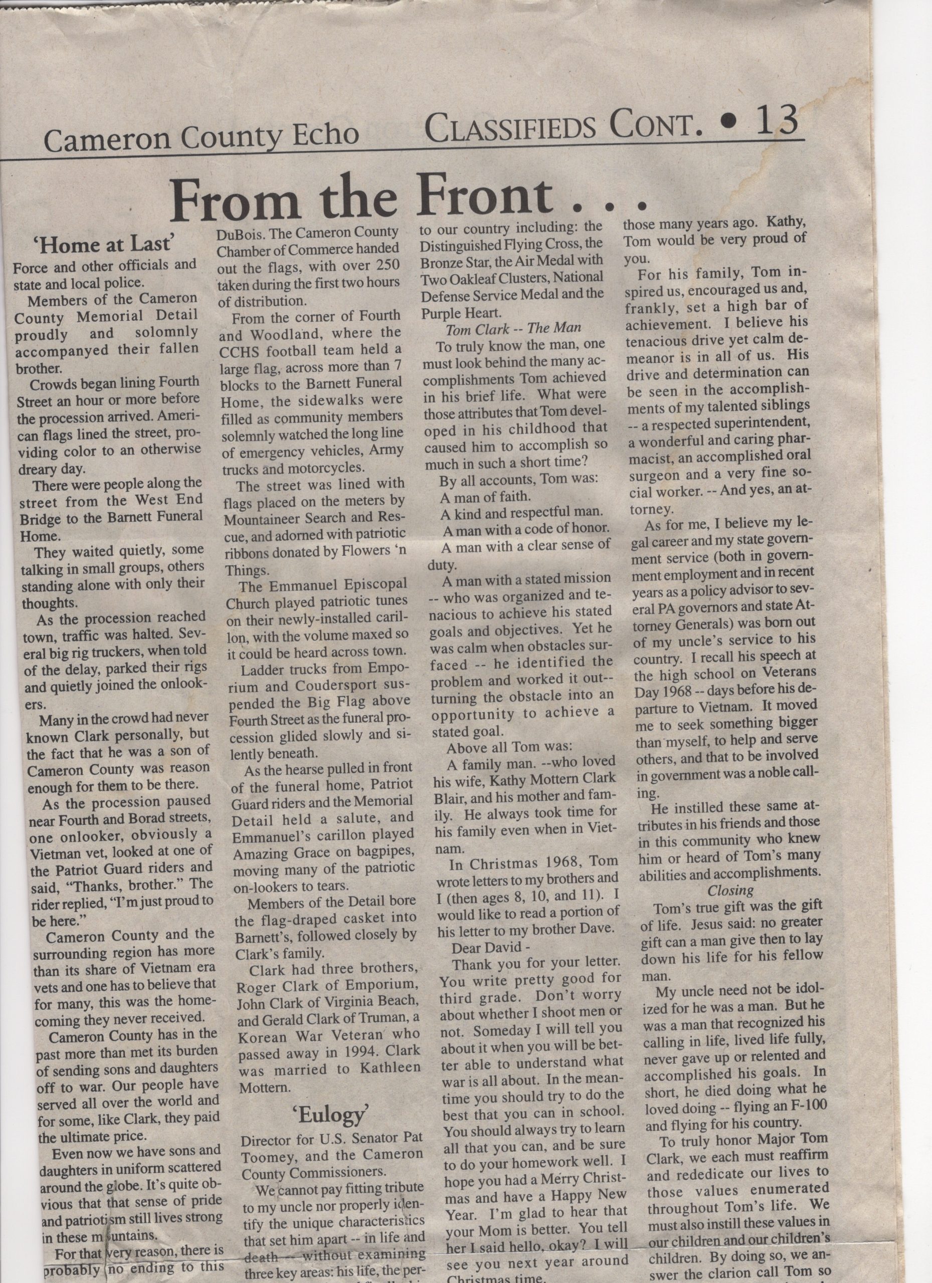 In Memory of Major Thomas E. Clark